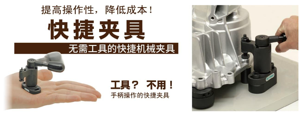 “圆柱型下拉式夹具”采用了能有效避免发生工具干涉的圆柱型设计。通过从工件的下方拉紧工件,可实现5面加工。通过圆锥面和装夹面的两面拘束进行定位,重复定位精度为5μm。可以集成加工工序。